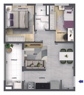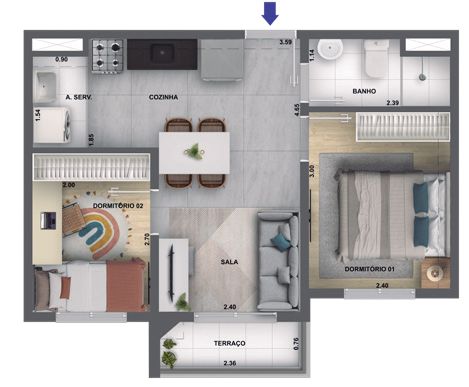 Plantas inteligentes e bem distribuídas, com ambientes integrados, cozinha americana e opções de terraço, aproveitando cada metro quadrado de forma eficiente.
